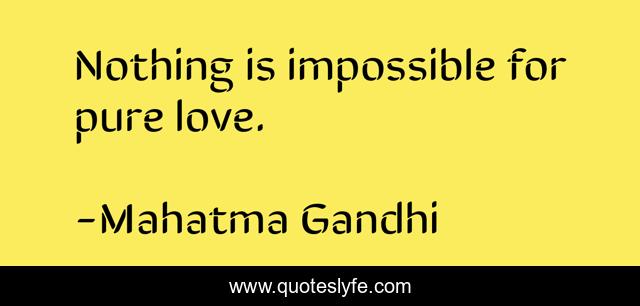 This page presents the quote "Nothing is impossible for pure love.". Author of this quote is Mahatma Gandhi. This quote is about love, possible, affection, power-of-love,.