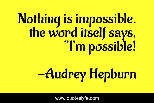 "Audrey Hepburn Quotes." Quoteslyfe.com, 2025. Fri. 05 Dec. 2025. <https://www.quoteslyfe.com/quote/Nothing-is-impossible-the-word-itself-says-179898>.