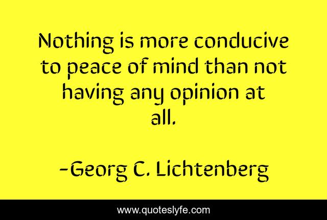 This page presents the quote "Nothing is more conducive to peace of mind than not having any opinion at all.". Author of this quote is Georg C. Lichtenberg. This quote is about opinion, mind, peace of mind,.