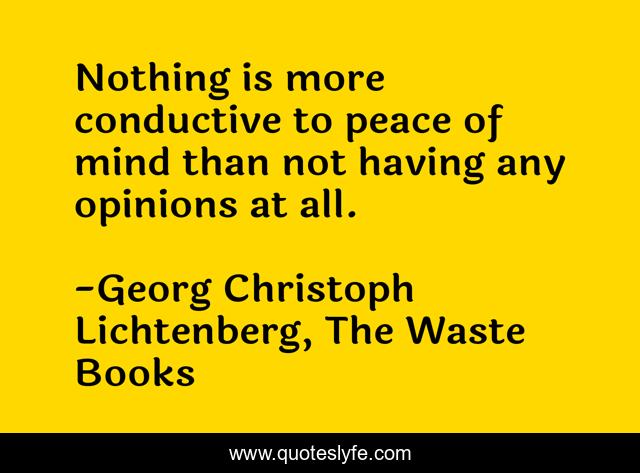 This page presents the quote "Nothing is more conductive to peace of mind than not having any opinions at all.". Author of this quote is Georg Christoph Lichtenberg, The Waste Books. This quote is about peace-of-mind, opinions, strength, character, critical-thinking,.