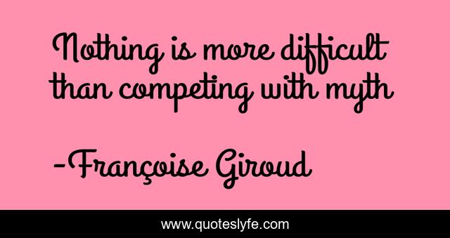 This page presents the quote "Nothing is more difficult than competing with myth". Author of this quote is Françoise Giroud. This quote is about quotes, french, myth,.