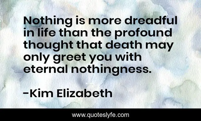 This page presents the quote "Nothing is more dreadful in life than the profound thought that death may only greet you with eternal nothingness.". Author of this quote is Kim Elizabeth. This quote is about thought, life, profound,.