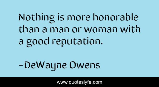 This page presents the quote "Nothing is more honorable than a man or woman with a good reputation.". Author of this quote is DeWayne Owens. This quote is about life, life-lessons, success, leadership-development, motivational-inspirational, motivational, confidence, wisdom, leadership,.