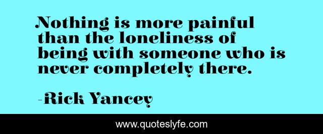 This page presents the quote "Nothing is more painful than the loneliness of being with someone who is never completely there.". Author of this quote is Rick Yancey. This quote is about living, life, love, loneliness, sadness, affection,.