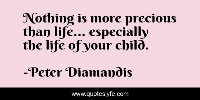 This page presents the quote "Nothing is more precious than life... especially the life of your child.". Author of this quote is Peter Diamandis. This quote is about nothing, precious, child,.
