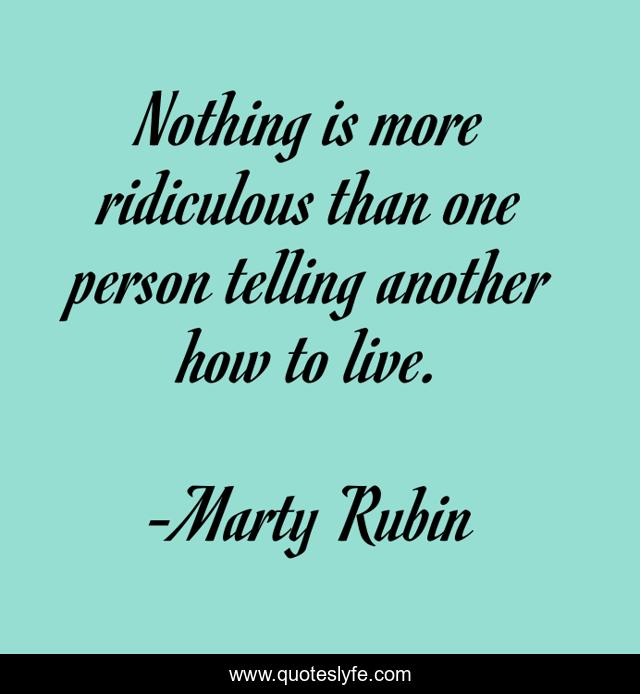 This page presents the quote "Nothing is more ridiculous than one person telling another how to live.". Author of this quote is Marty Rubin. This quote is about advice, individuality, morality,.
