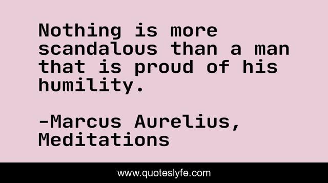 This page presents the quote "Nothing is more scandalous than a man that is proud of his humility.". Author of this quote is Marcus Aurelius, Meditations. This quote is about pride, humility, morality,.