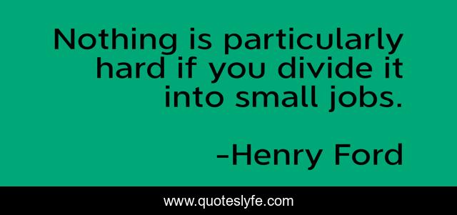 This page presents the quote "Nothing is particularly hard if you divide it into small jobs.". Author of this quote is Henry Ford. .