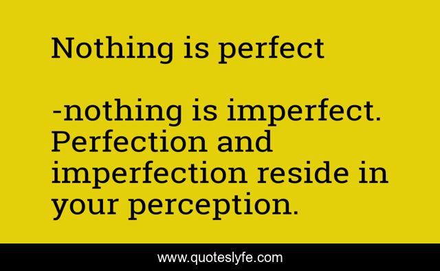 This page presents the quote "Nothing is perfect". Author of this quote is nothing is imperfect. Perfection and imperfection reside in your perception.. .
