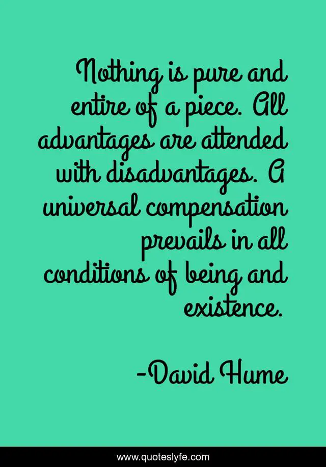 This page presents the quote "Nothing is pure and entire of a piece. All advantages are attended with disadvantages. A universal compensation prevails in all conditions of being and existence.". Author of this quote is David Hume. .