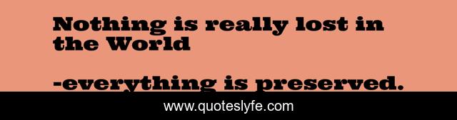 This page presents the quote "Nothing is really lost in the World". Author of this quote is everything is preserved.. .