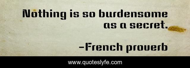 This page presents the quote "Nothing is so burdensome as a secret.". Author of this quote is French proverb. This quote is about secrets, secrecy,.