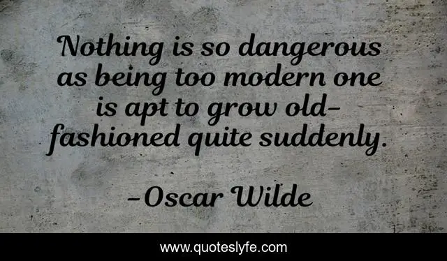 This page presents the quote "Nothing is so dangerous as being too modern one is apt to grow old-fashioned quite suddenly.". Author of this quote is Oscar Wilde. This quote is about society, social,.