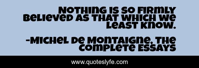 "Michel de Montaigne, The Complete Essays Quotes." Quoteslyfe.com, 2025. Sun. 07 Dec. 2025. <https://www.quoteslyfe.com/quote/Nothing-is-so-firmly-believed-as-that-30461>.