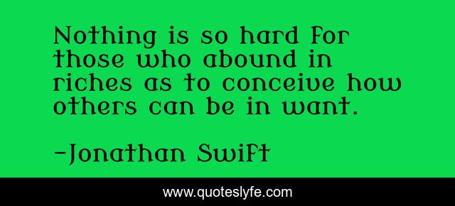 This page presents the quote "Nothing is so hard for those who abound in riches as to conceive how others can be in want.". Author of this quote is Jonathan Swift. .