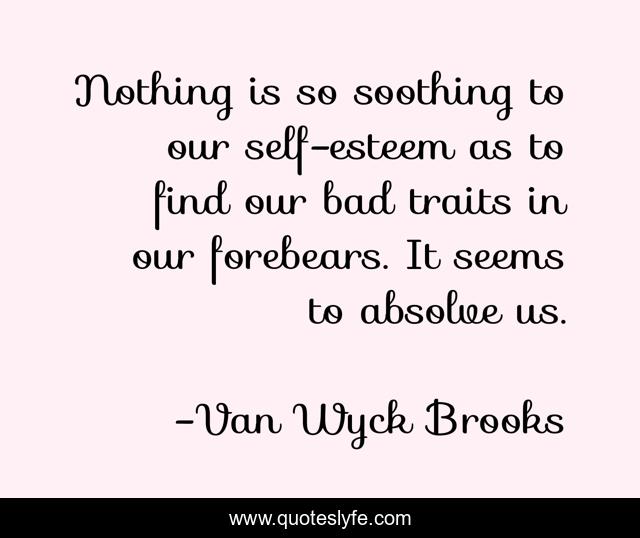 This page presents the quote "Nothing is so soothing to our self-esteem as to find our bad traits in our forebears. It seems to absolve us.". Author of this quote is Van Wyck Brooks. .