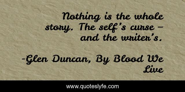This page presents the quote "Nothing is the whole story. The self’s curse – and the writer’s.". Author of this quote is Glen Duncan, By Blood We Live. This quote is about nothing, self,.