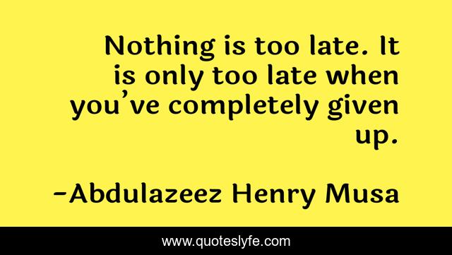 This page presents the quote "Nothing is too late. It is only too late when you’ve completely given up.". Author of this quote is Abdulazeez Henry Musa. .