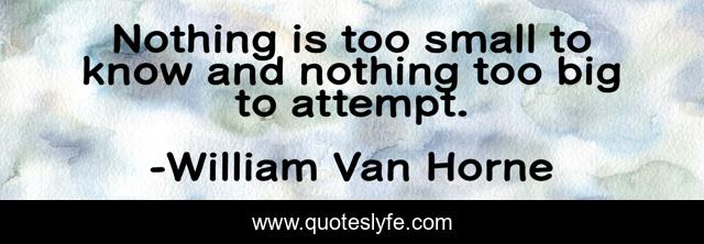 This page presents the quote "Nothing is too small to know and nothing too big to attempt.". Author of this quote is William Van Horne. This quote is about ability, achievement,.