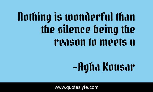 This page presents the quote "Nothing is wonderful than the silence being the reason to meets u". Author of this quote is Agha Kousar. .