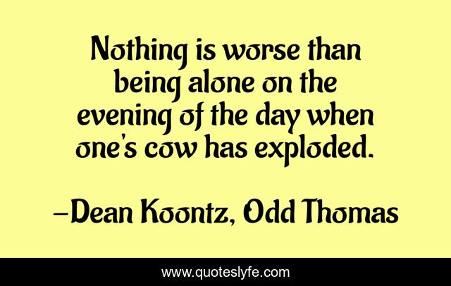 This page presents the quote "Nothing is worse than being alone on the evening of the day when one's cow has exploded.". Author of this quote is Dean Koontz, Odd Thomas. This quote is about alone, exploded, cow, odd-thomas,.