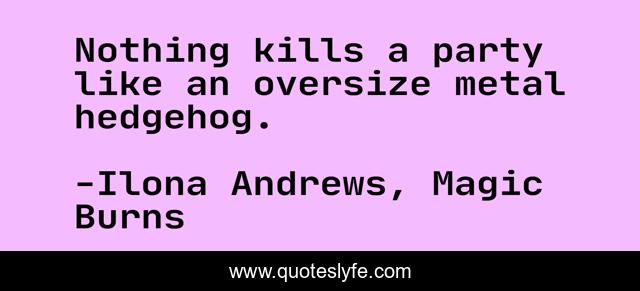 "Ilona Andrews, Magic Burns Quotes." Quoteslyfe.com, 2025. Fri. 05 Dec. 2025. <https://www.quoteslyfe.com/quote/Nothing-kills-a-party-like-an-oversize-205842>.