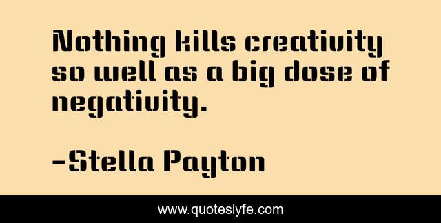This page presents the quote "Nothing kills creativity so well as a big dose of negativity.". Author of this quote is Stella Payton. This quote is about stella-payton, better-life-with-stella, creativity, negativity,.