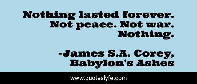 This page presents the quote "Nothing lasted forever. Not peace. Not war. Nothing.". Author of this quote is James S.A. Corey, Babylon's Ashes. This quote is about peace, war,.