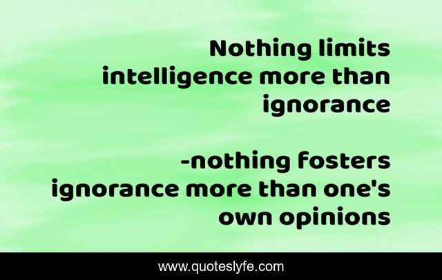 This page presents the quote "Nothing limits intelligence more than ignorance". Author of this quote is nothing fosters ignorance more than one's own opinions. .