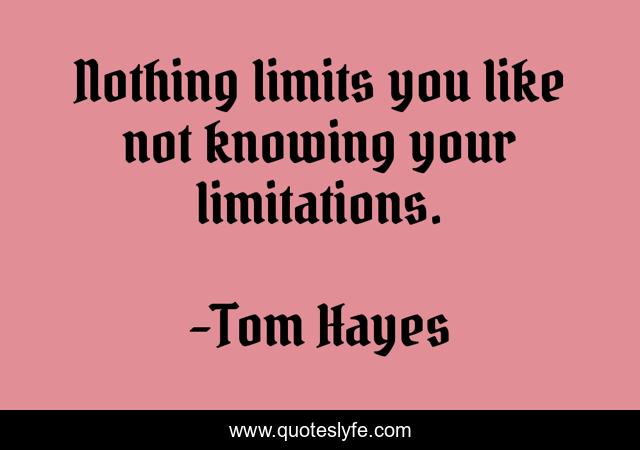 This page presents the quote "Nothing limits you like not knowing your limitations.". Author of this quote is Tom Hayes. This quote is about knowing, limitations, limits, matter-more, quotes-to-make-you-think, knowing-who-you-are, limit, quotes-about-life, relevance,.