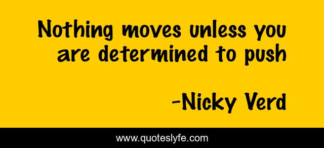 This page presents the quote "Nothing moves unless you are determined to push". Author of this quote is Nicky Verd. This quote is about motivation, positive-mind, focus-on-your-dreams, life, faith-in-god, inspirational, enthusiasm, mindset, purpose,.