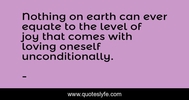 This page presents the quote "Nothing on earth can ever equate to the level of joy that comes with loving oneself unconditionally.". Author of this quote is . This quote is about edmond-mbiaka, loving-oneself, self-love, unconditional-love, loving-oneself-unconditionally,.
