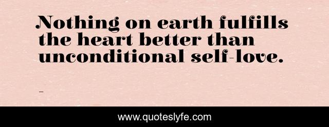 This page presents the quote "Nothing on earth fulfills the heart better than unconditional self-love.". Author of this quote is . This quote is about heart, self-love, edmond-mbiaka, loving-yourself-unconditionally, fulfilling-your-inner-self, unconditional-self-love,.