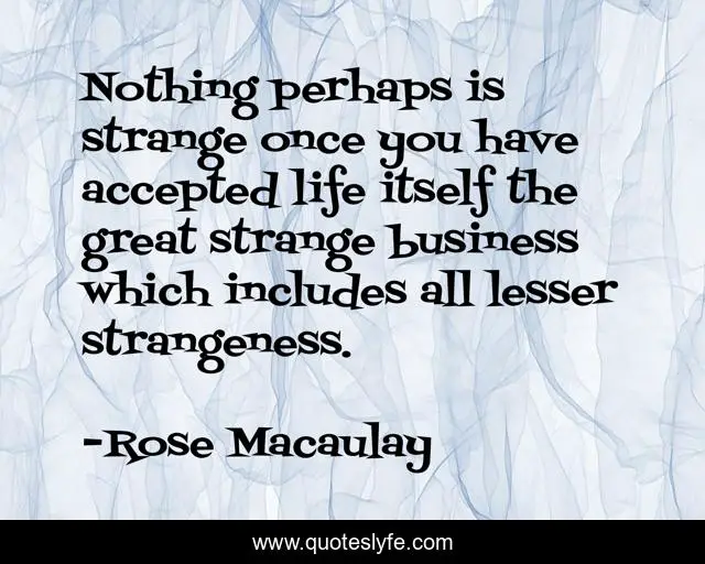 This page presents the quote "Nothing perhaps is strange once you have accepted life itself the great strange business which includes all lesser strangeness.". Author of this quote is Rose Macaulay. This quote is about uncertainties, doubts,.