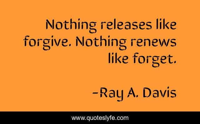 This page presents the quote "Nothing releases like forgive. Nothing renews like forget.". Author of this quote is Ray A. Davis. This quote is about release, enthusiasm, forgiveness, inspirational,.