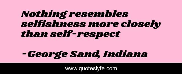 This page presents the quote "Nothing resembles selfishness more closely than self-respect". Author of this quote is George Sand, Indiana. This quote is about selfishness, self-respect,.