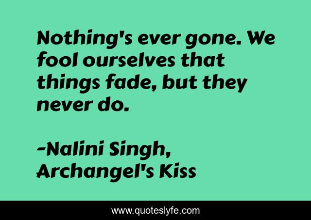 This page presents the quote "Nothing's ever gone. We fool ourselves that things fade, but they never do.". Author of this quote is Nalini Singh, Archangel's Kiss. This quote is about bhie, quote, raphael,.