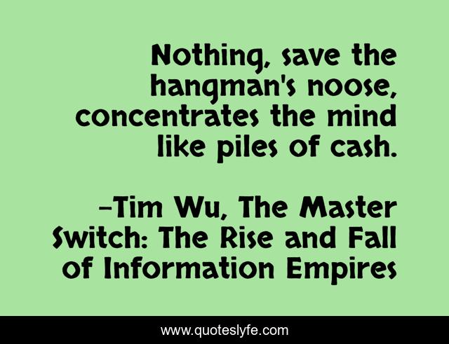 "Tim Wu, The Master Switch: The Rise and Fall of Information Empires Quotes." Quoteslyfe.com, 2025. Sat. 06 Dec. 2025. <https://www.quoteslyfe.com/quote/Nothing-save-the-hangman-s-noose-concentrates-79964>.