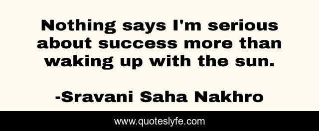 This page presents the quote "Nothing says I'm serious about success more than waking up with the sun.". Author of this quote is Sravani Saha Nakhro. .