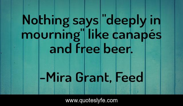 This page presents the quote "Nothing says "deeply in mourning" like canapés and free beer.". Author of this quote is Mira Grant, Feed. This quote is about funny, comedy,.
