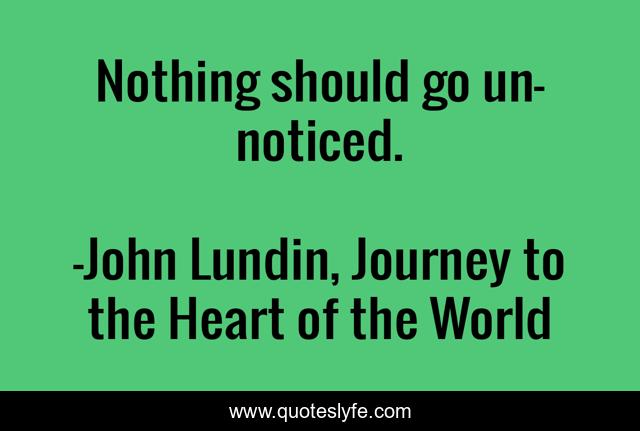 "John Lundin, Journey to the Heart of the World Quotes." Quoteslyfe.com, 2025. Fri. 05 Dec. 2025. <https://www.quoteslyfe.com/quote/Nothing-should-go-un-noticed-67532>.