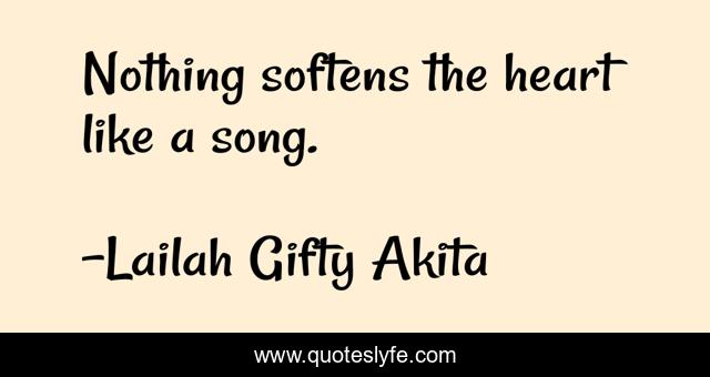 "Lailah Gifty Akita Quotes." Quoteslyfe.com, 2025. Sat. 06 Dec. 2025. <https://www.quoteslyfe.com/quote/Nothing-softens-the-heart-like-a-song-79225>.