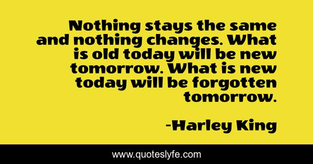 This page presents the quote "Nothing stays the same and nothing changes. What is old today will be new tomorrow. What is new today will be forgotten tomorrow.". Author of this quote is Harley King. .