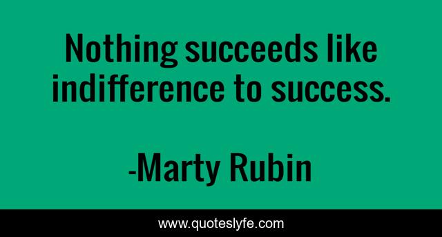 This page presents the quote "Nothing succeeds like indifference to success.". Author of this quote is Marty Rubin. This quote is about indifference, happiness, success,.