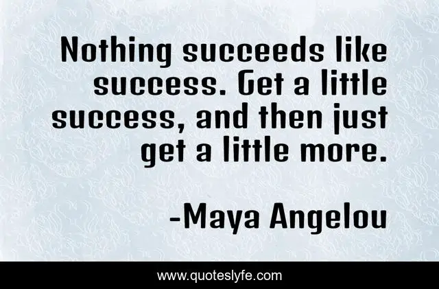 "Maya Angelou Quotes." Quoteslyfe.com, 2025. Mon. 08 Dec. 2025. <https://www.quoteslyfe.com/quote/Nothing-succeeds-like-success-Get-a-little-325581>.