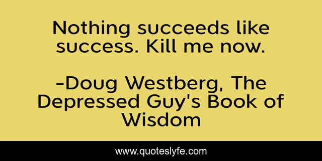This page presents the quote "Nothing succeeds like success. Kill me now.". Author of this quote is Doug Westberg, The Depressed Guy's Book of Wisdom. This quote is about humor, depression,.