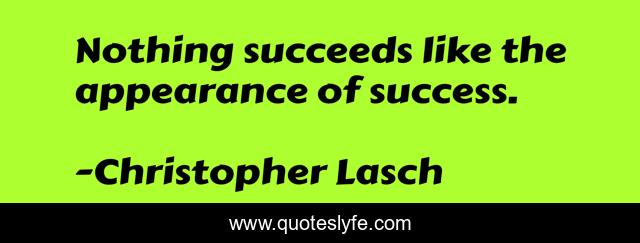 This page presents the quote "Nothing succeeds like the appearance of success.". Author of this quote is Christopher Lasch. This quote is about nothing, appearance, like,.