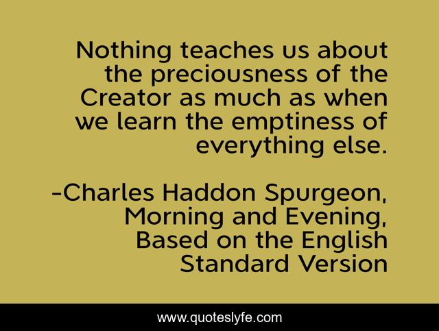 "Charles Haddon Spurgeon, Morning and Evening, Based on the English Standard Version Quotes." Quoteslyfe.com, 2025. Mon. 08 Dec. 2025. <https://www.quoteslyfe.com/quote/Nothing-teaches-us-about-the-preciousness-of-193827>.