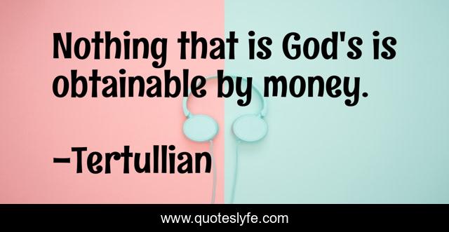 This page presents the quote "Nothing that is God's is obtainable by money.". Author of this quote is Tertullian. This quote is about nothing, money,.