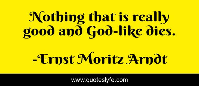 This page presents the quote "Nothing that is really good and God-like dies.". Author of this quote is Ernst Moritz Arndt. This quote is about nothing, good, really,.